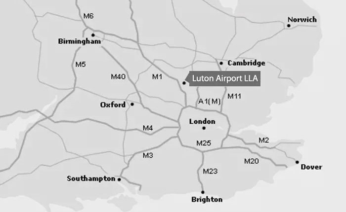 London Luton Airport is conveniently located just off the M1 motorway, making it easily accessible from London, the Midlands, and other major UK regions.